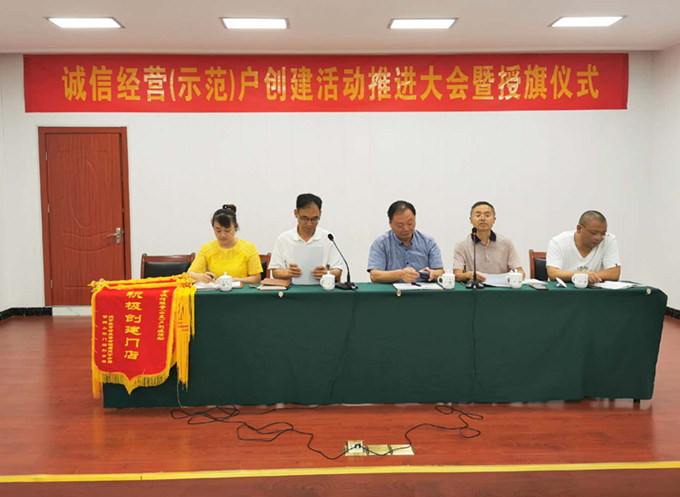 2020年7月28日上午9:30分誠信經(jīng)營(yíng)(示范)戶(hù)創(chuàng )建活動(dòng)推進(jìn)大會(huì )暨“積極創(chuàng )建門(mén)店”授旗儀式在常州食品有限公司會(huì )議中心隆重舉行。